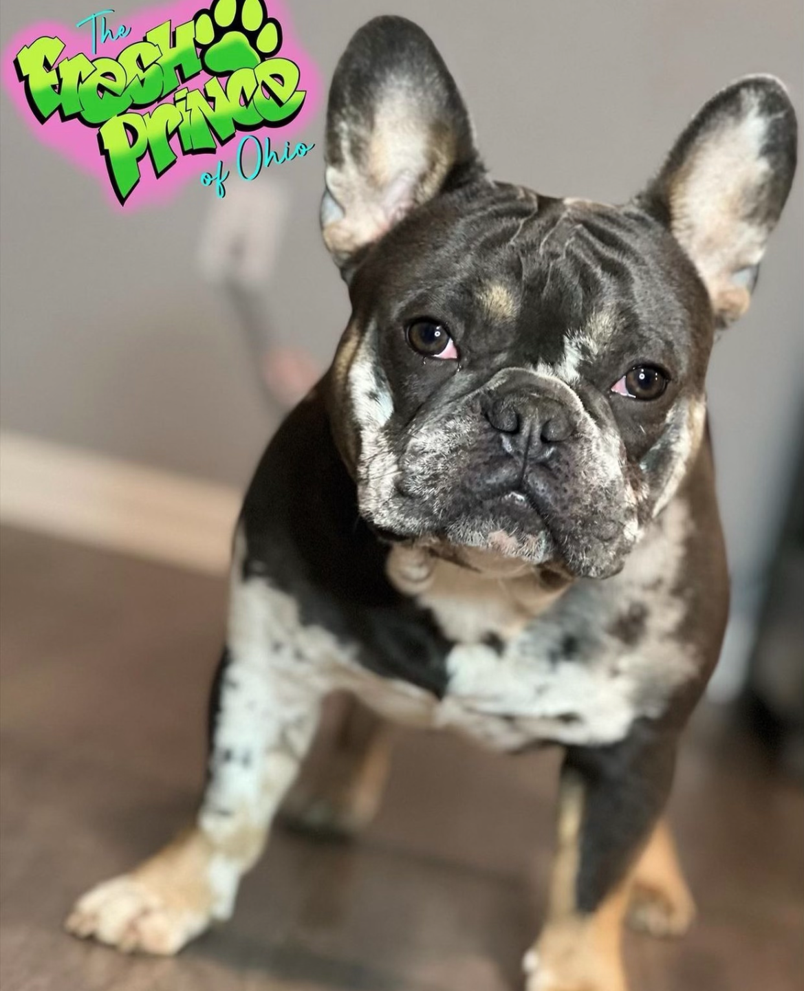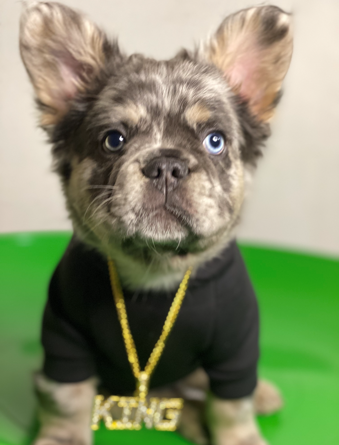 Tan and Blue Merle carrying Chocolate. Grandson of Lord Sugar. Enjoys playing with his siblings, both human and dog. He also enjoys a good fart when he thinks no one is paying attention to him 😂. He has a personality of his own.